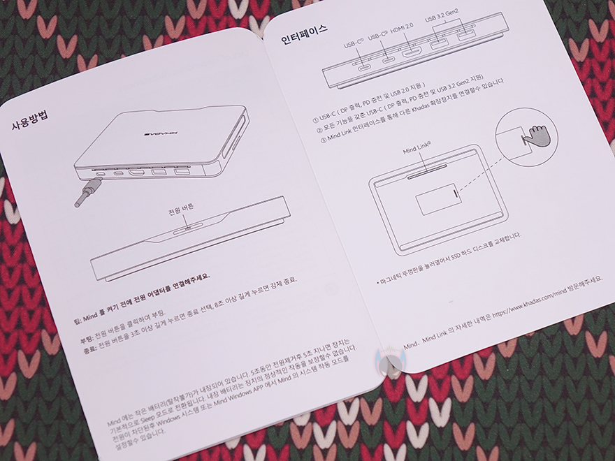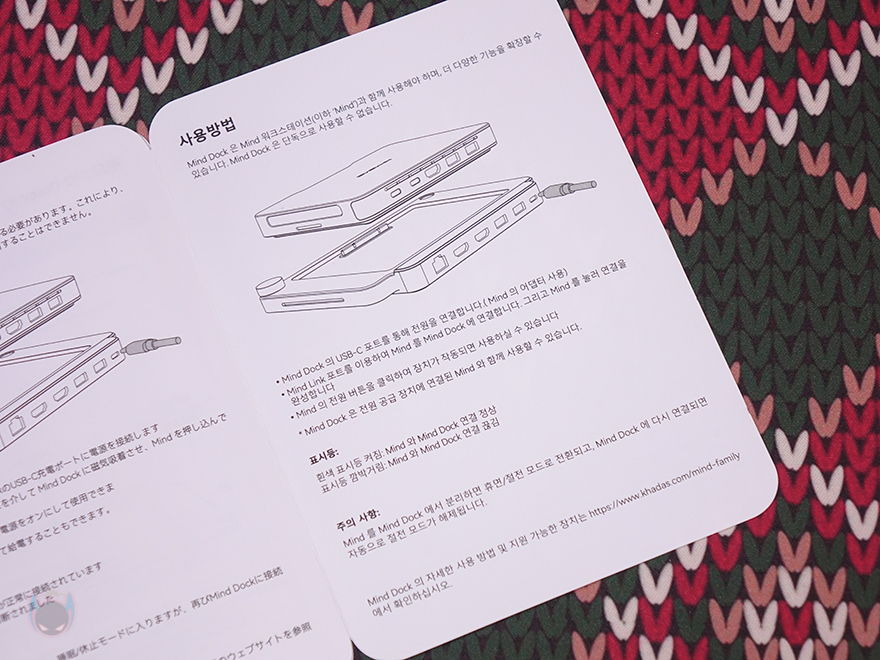 박스를 열어보면, 포장도 비슷하게 맨 위에 종이포장재로 포장된 마인드 독(Mind Dock)을 확인할 수 있으며, 그아래 제품설명서와 보증서가 있죠. 그래서, 제품 구성은 간단하게 마인드 독, 제품설명서, 보증서로만 이루어져 있고, 역시 설명서에는 한국어가 포함되어 있습니다.