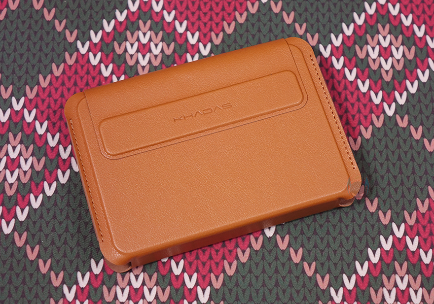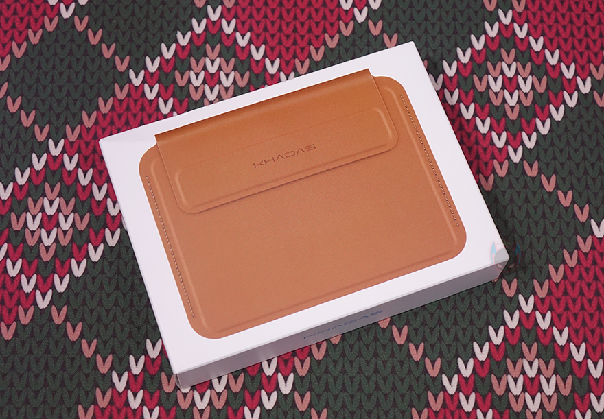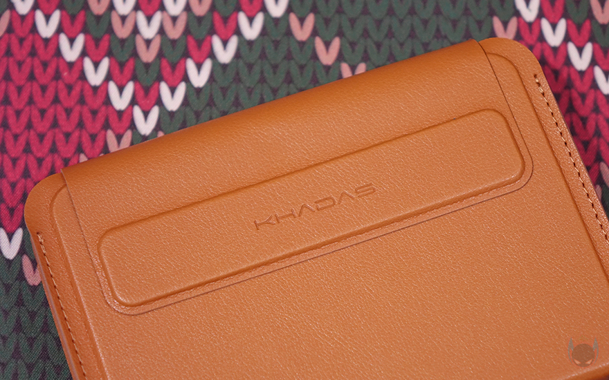 이렇게 기존의 미니PC보다 슬림하고 가벼운 무게 자랑하기 때문에, 마인드 미니 PC는 휴대성이 강조되는 만큼 휴대할 때 보관할 수 있는 전용 가죽케이스도 따로 구매할 수 있습니다. 휴대용 가죽케이스(Portable leather case, https://s.click.aliexpress.com/e/_DDTfRTH)를 실제로 접해보면, 가죽 느낌답게 브라운(Brown) 색상을 가졌으며, 질감도 꽤 고급스러운 느낌을 줍니다. 여기에 오픈(Open) 부분에는 Khadas 로고(Logo)를 음각으로 새겨놨으며, 자석(Magnetic) 방식으로 열고 닫을 수 있죠. 마인드(Mind) 미니 PC를 자주 휴대 사용한다면 전용 케이스를 추천합니다.