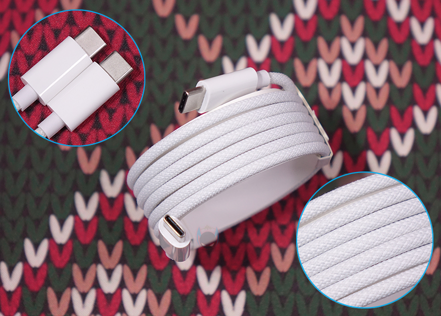 끝으로, 마인드 미니PC(Mind mini PC)에 제공되는 전원케이블과 전원어댑터를 살펴보면, 전원케이블은 USB Type-C to C 케이블로 전체 슬리빙 처리가 되었으며, 길이는 1.2m입니다. 그리고, 전원어댑터는 역시 KC인증을 받은 제품이고, USB Type-C 포트 1개만 존재하며, 최대 65W를 지원하죠.