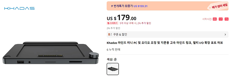 그리고, 바로 위에는 고무 커버가 하나 적용되어 있는데, 커버를 벗기면 슬롯은 확인할 수 있습니다. 이 슬롯은 방금 언급했던 마인드 미니PC의 포트를 확장할 수 있는 장치 마인드 독(Mind Dock, https://s.click.aliexpress.com/e/_DBYzhJ5)과 연결되는 슬롯부부느로 마인드 독 역시 소비자가 별도로 구매할 수 있습니다. 실제로 마인드 독을 잠깐 살펴보면, 마인드 미니 PC처럼 박스 전체 밀봉처리가 되어있으며, 박스 후면에 역시 국내 전자제품 안전(KC) 인증을 확인할 수 있어서 마인드 독과 규제제한 없이 자유롭게 구매할 수 있죠.