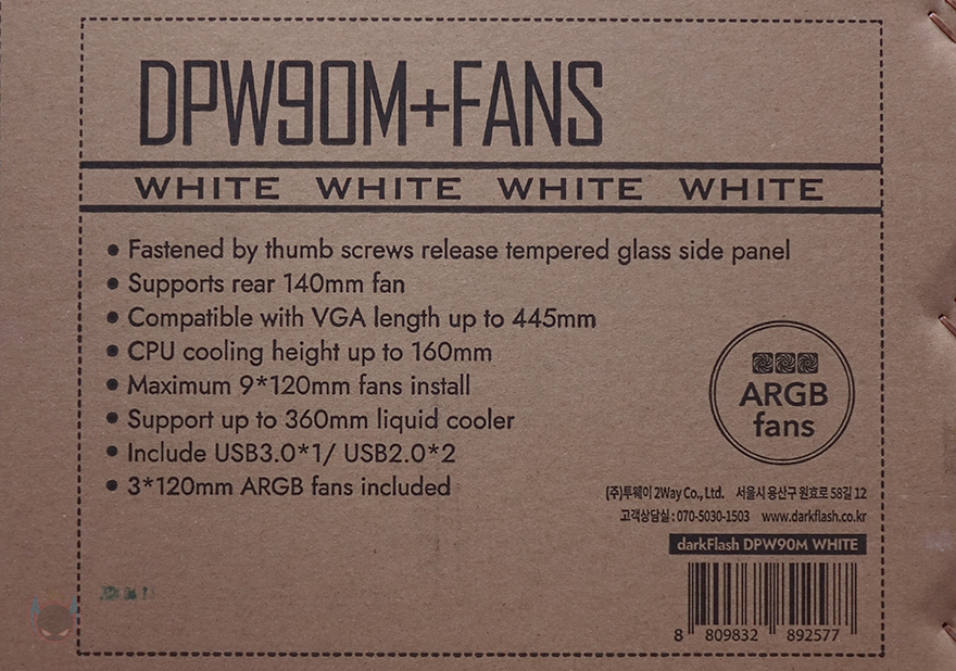 다크플래쉬 darkFlash DPW90M ARGB 강화유리 미니타워 컴퓨터 PC 케이스 (화이트)