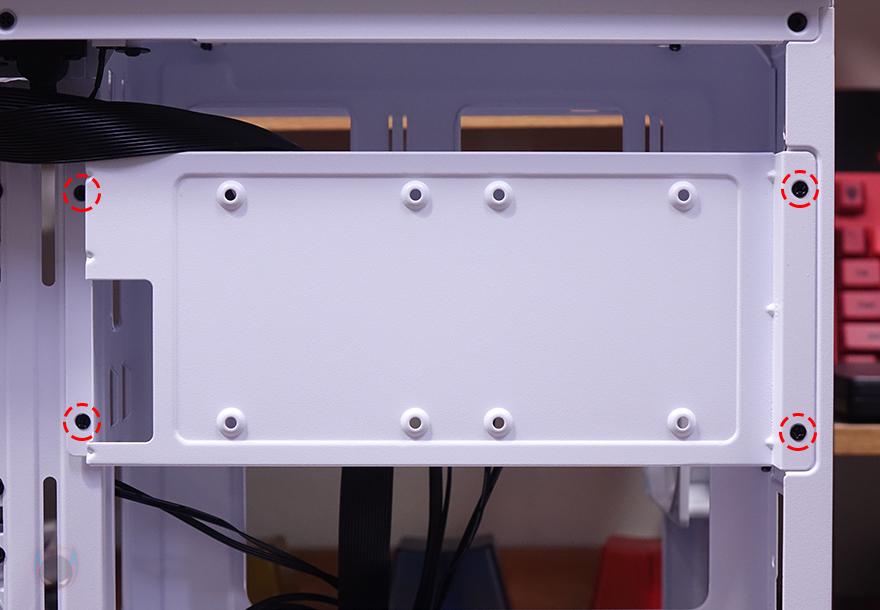 그리고, 전면 강화유리 패널 분리 같은경우에는 내부에서 위아래 고정 나사가 총 4개 적용된 것을 확인할 수 있는데, 고정 나사를 모두 풀면 쉽게 분리할 수 있습니다. 참고로, 조립 시 큰 불편함이 되지 않기 때문에 굳이 분리할 필요는 없습니다.
