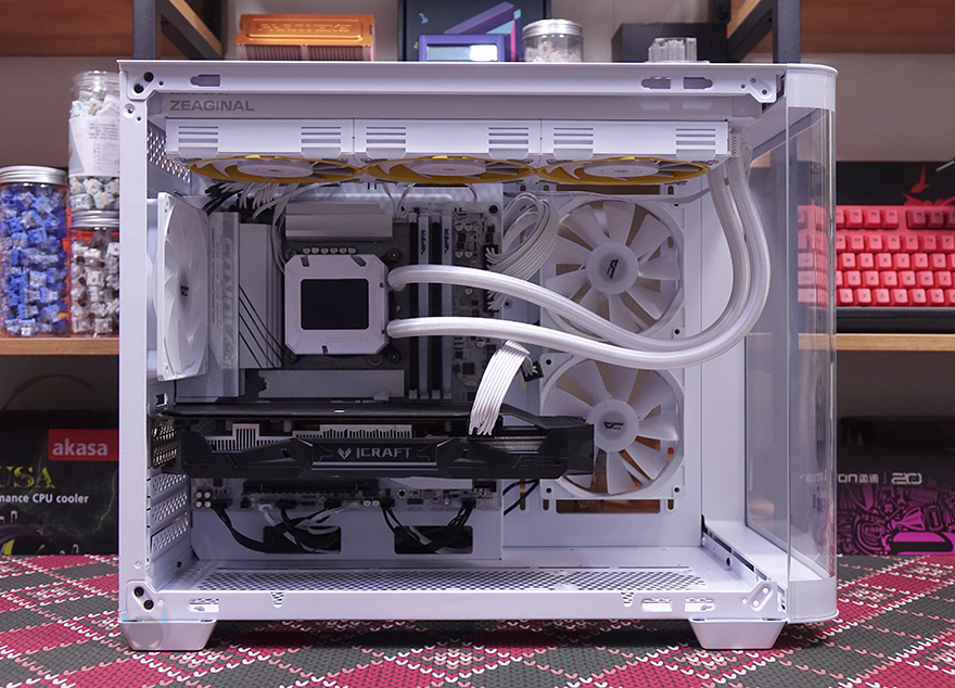 직접, 다크플래쉬 DPW90M 미니타워 PC케이스를 사용해 시스템 조립을 해봤습니다. 미니타워지만 전반적으로 조립에 큰 어려움은 없었으며, 장착 시 유의할 사항이라면 후면 배기 팬이 장착된 상태에서 일부 메인보드는 바로 장착이 힘든 경우가 있기 때문에 배기팬을 분리하고 메인보드를 먼저 장착해야 합니다. 그리고, 상단에 수랭쿨러 사용 시 최대 360mm 라디에이터까지 장착이 가능한데, 메인보드와 라디에이터 사이의 간격이 다소 있기 때문에 케이블을 연결하는데 어려움은 없으며, 그래도 좀 더 수월하게 연결하고 싶다면, 메인보드보조전원 케이블을 먼저 연결하고 쿨러는 장착하는데 수월합니다. 참고로, 타워형 쿨러를 장착할 시에는 최대 160mm 높이까지 지원합니다. 그리고, 그래픽카드는 최대 445mm 길이까지 지원하기 때문에 사실상 현재 판매중인 모든 그래픽카드 장착이 가능하고, 후면 저장장치와 파워서플라이 같은 경우에는 장착에 어려움이나 간섭 문제가 없고, 선정리공간을 확보하고 수월하게 정리하고 싶다면 깊이가 짧은 파워서플라이나 모듈러 파워서플라이를 사용하는 게 좋습니다. 저장장치를 장착하는 브라켓 같은 경우에는 일부 케이블을 가려주는 효과도 있기 때문에 케이블정리를 대충 해도 나름 깔끔하게 보입니다.