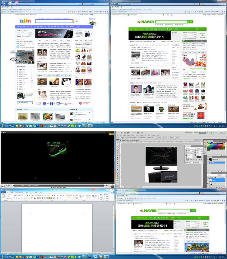 그럼, 실제 포탈리온 Professional(프로페셔널) 2700QW을 살펴보도록 하자. 앞서 언급했듯이 이번 모델은 보급형 모델로 By-Pass 방식이라 OSD 메뉴가 없다. 따라서 바로, 기본적으로 모니터 스크린테스트를 통해 불량여부를 확인해보자. 스크린테스트를 통해 포탈리온 Professional(프로페셔널) 2700QW의 불량여부를 확인해 본 결과, 결점이나 색표현, 빛샘, 응답속도 등 모두 문제가 없음을 확인할 수 있었다. 제품 품질에는 신뢰감을 주었다 할 수 있겠다. 이번 모델은 앞서도 언급했듯이 최대 해상도 2560x1440을 지원한다. 27인치 크기에 높은 행상도를 지원하기 때문에, 화면 분할을 통한 다중 프로그램 실행작업이 가능하겠다. 웹검색이나 쇼핑을 할 때는 2개의 브라우저를 띄워 사용할 수도 있고, 영상을 보면서 다른 작업을 할 수도 있겠다. 큰 해상도를 지원해주는 만큼 사용자가 활용을 잘 하면 되겠다.