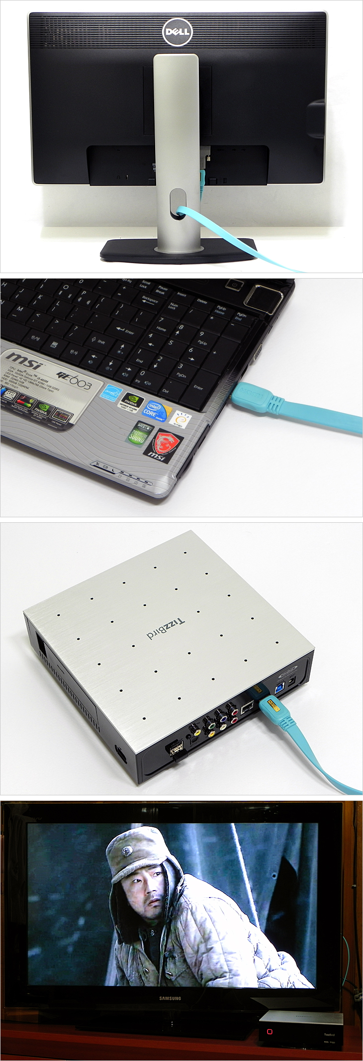 엑스틸 플랫타입 HDMI 케이블은 HDMI가 지원되는 제품에는 모두 사용이 가능하다. 모니터를 비롯해, 노트북과 외부기기 연결할 시, 또는 최근 많이 사용되는 디빅플레이어 같은 제품에도 사용이 가능하다. 실제, 디빅플레이어에 연결한 후 대형 TV를 통해 영상을 본 결과, 끊김없이 잘 영상이 출력되는 것을 확인할 수 있었다.