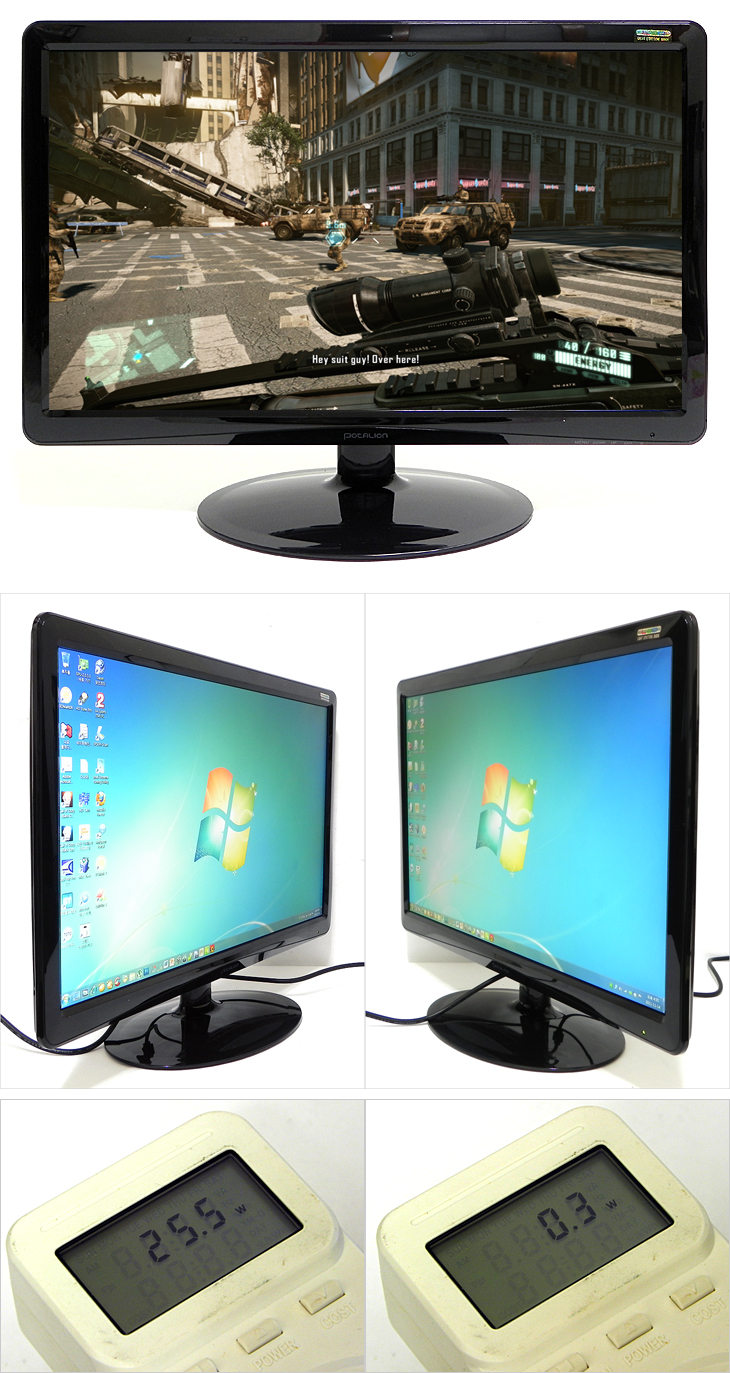 실생활 사용으로 포탈리온 OTL2302W를 통해 게임을 실행해본 결과, 응답속도 5ms 지원으로 FSP장르 같은 게임도 전문게이머 아니라면, 일반 사용자들에게는 충분한 것을 느낄 수 있었다. 또한, 포탈리온 OTL2302W의 패널이 TN패널이라 좌우 시야각이 IPS나 VA패널보다 조금 떨어지지만 그래도 170°를 확보하고 있어 일반 사용자들에게는 무난한 시야각이라 할 수 있겠다. 끝으로, 포탈리온 OTL2302W의 소비전력과 대기전력을 확인해본 결과, 소비전력은 약 25W, 대기전력은 1W 미만을 보여줘서 LED백라이트의 장점과 에너지효율을 잘 보여줬다.