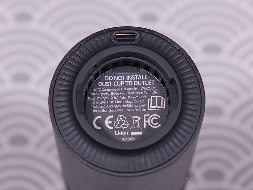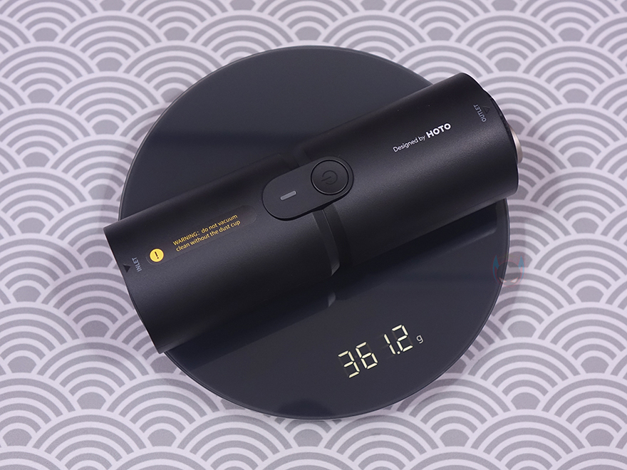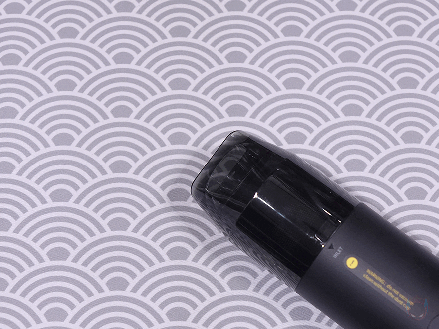 그럼, 직접 HOTO(호토) 압축 공기 캡슐 헨드헬드 진공 청소기(Compressed Air Capsule)를 사용해보면, 사용법은 간단합니다. 전원버튼은 1.5초이상 누르고 있으면 전원을 켤 수 있고, 다시 1.5초이상 누르면 전원을 끌 수 있습니다. 그리고, 전원이 켜지면 버튼 바로 위에 배치된 LED가 화이트(White) 색상으로 점등되며, 배터리가 20%미만으로 남으면 레드(Red) 색상으로 변경됩니다. 또한, 전원을 켠 상태에서 버튼을 한 번씩 누르면 1, 2단계로 진공 흡입속도조절을 할 수 있습니다. 앞서 사양표기에서 확인했듯이 압축 공기 캡슐 헨드헬드 진공 청소기의 흡입력은 최대 15000Pa로 이는 일반 보급형 무선 청소기의 흡입력과도 비슷합니다. 참고로, 모터는 브러시리스이며, 최대 91,000RPM 속도로 작동합니다. 그립은 앞서 언급했듯이 휴대성을 고려해 성인 손으로 그립하기에 편한 수준입니다.