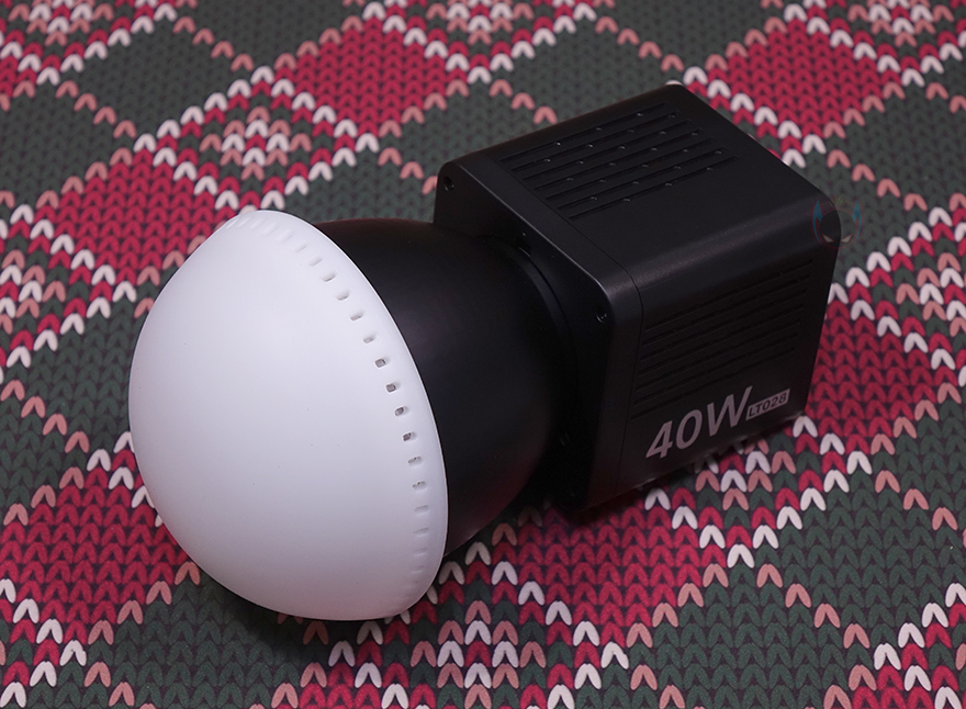 그리고, 기본 제공되는 반구형태의 디퓨저(Diffuser)는 실리콘 재질이며, 테두리 부분에는 역시 반사경에서 발생되는 일부 발열이 배출되도록 에어홀 처리를 해놨으며, 장착은 그냥 반사경과 디퓨저 안쪽 홈-라인을 맞춰서 끼우면 됩니다. 참고로, 디퓨저까지 장착한 상태에서의 제품 무게는 약 621g이며, 전원어댑터의 경우 최대 소비전력은 65W까지 지원하며, LT028에 내장된 배터리를 완충하는 데는 약 3시간이 걸리며, 최대 밝기에선 75분까지, 최저 밝기에선 5시간까지 사용가능합니다.