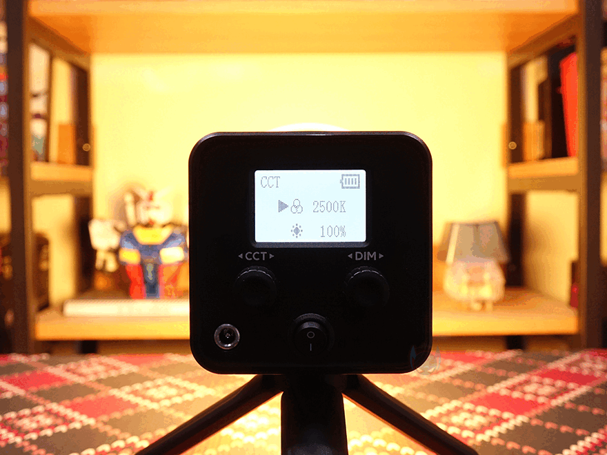 직접, Ulanzi(울란지) LT028 COB 조명을 사용해 보면, 배터리가 내장되어 있기 때문에, 전원스위치만 켜면 바로 사용이 가능한데, 전원이 켜졌을 때 디스플레이 화면에서 '왼쪽 노브(CCT)를 시계 방향으로 돌리라'는 메시지를 확인할 수 있습니다. 왼쪽 노브를 시계 방향으로 돌리면 COB LED가 발산하면서 디스플레이에 현재 설정값을 보여주죠. 물론, 배터리 잔량표시도 해줍니다. 일단, 앞서 언급했듯이 왼쪽 노브를 돌리면 색온도 조절을 할 수 있으며, 범위는 일명 전구색이라 부르는 2500K부터 주광색의 6500K까지 조절할 수 있습니다. 또한, 오른쪽 노브(DIM)를 돌리면 밝기조절을 할 수 있는데, 0%~100% 범위로 조절이 가능하며, 0%는 Off 상태가 됩니다. 조작법은 단순하기 때문에 초보자도 쉽게 이해하고 사용할 수 있습니다. 그리고, 왼쪽 노브(CCT)를 버튼처럼 누르면 8가지 조명효과 모드로 전환할 수 있으며, 색온도와 밝기, 모드 3가지 설정을 통해 사용자가 원하는 분위기 연출의 조명으로 선택하면 됩니다.