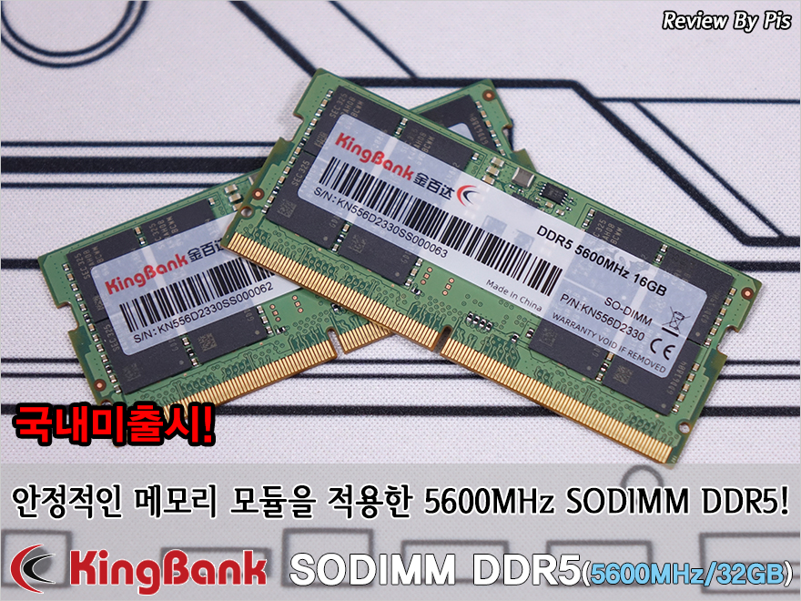 작년부터 인텔과 AMD CPU는 모두 메모리 지원을 DDR5로 본격화시켰습니다. 물론, 인텔(Intel) 같은 경우에는 여전히 DDR4와 DDR5 둘 다 지원하고 있지만, 확실히 2년 전에 비해서는 소비자들이 대부분 DDR5를 선택하고 있고, 노트북이나 미니 PC에서도 대부분 DDR5가 탑재되고 있죠. 특히, 노트북(Notebook)과 미니 PC(Mini PC)에 사용되는 SO-DIMM 규격의 DDR5는 크게 4800 MHz와 5600 MHz로 나뉘고 있는데, 이는 인텔이 DDR5를 처음 지원하던 12세대의 영향 때문입니다. 지금은 인텔과 AMD 모두 5600 MHz부터 지원하고 있죠. 메모리(Memory)와 저장장치(Storage) 전문업체인 KingBank(https://www.kingbank.com/) 역시 SO-DIMM 규격의 DDR5를 4800MHz과 5600 MHz 두 가지 갖추고 있는데, 이번 시간에는 요즘 시대 많이 사용되는 5600 MHz 클럭의 DDR5를 한 번 살펴보도록 하겠습니다.