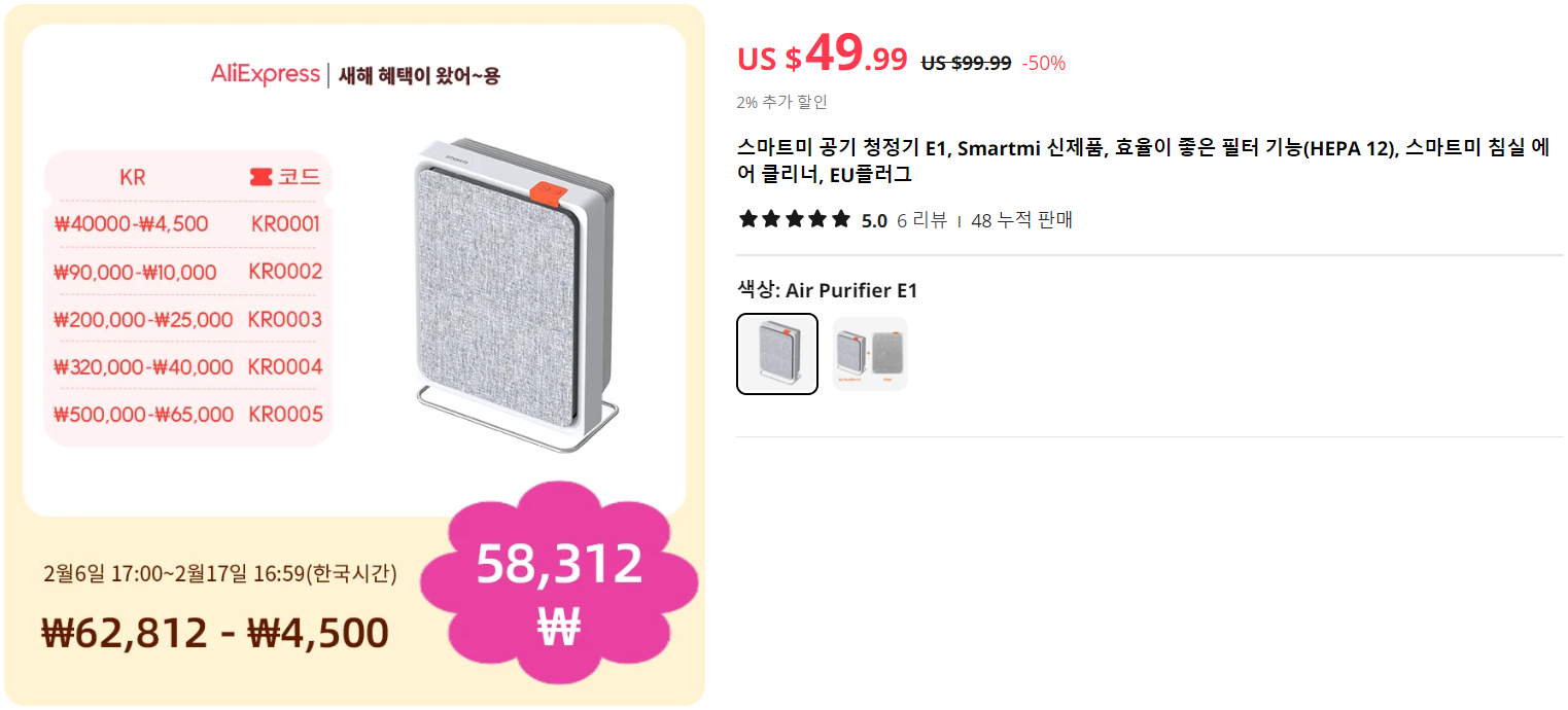| [알리익스프레스] 샤오미 브랜드 할인행사 및 할인코드(1월 26일까지) (0) | 2024.01.24 |