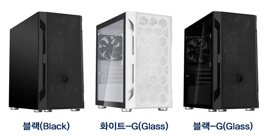 그럼, 본격적으로 FARA H1M PC케이스를 살펴보는데, 일단 개봉시 전면 베젤 아래에 적용된 로고(Logo) 부분에는 보호비닐이 부착되어 있기 때문에 제거해줘야 합니다. 그리고, FARA H1M PC케이스는 총 3가지 형태로 나왔는데, 사이드패널에 강화유리가 없는 기본 블랙(Black) 색상과 강화유리(Glass)가 적용된 화이트(White-G)와 블랙(Black-G)입니다.