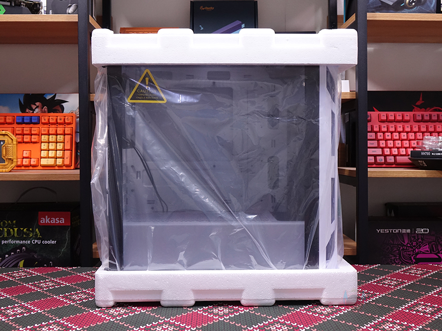 제품 포장은 PC케이스의 기본 포장인 외부 충격방지를 위한 스티로폼 완충재와 비닐 포장으로 처리되어 있으며, 부속품 지원에는 부품 장착에 필요한 각종 나사들, ARGB 허브(HUB), 팬 커넥터 연장 케이블, 소량의 케이블 타이를 제공해주고 있습니다.
