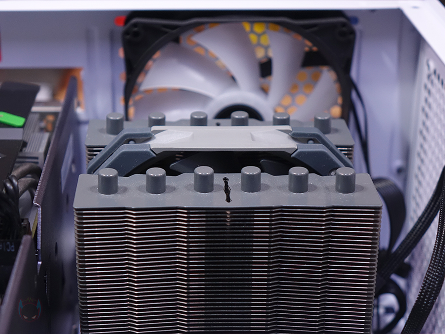 직접, 실버스톤(Silverstone) FARA H1M PC케이스를 사용해 시스템 조립을 해보면, 앞서 잠깐 언급했듯이 FARA H1M은 전형적인 M-ATX 규격의 미니타워 사이즈를 가졌습니다. 그래서, 내부 공간이 넉넉한 편은 아니기 때문에, 규격에 맞는 부품들 중 최대한 작은 사이즈의 부품들을 장착하는 게 공간확보에 유리합니다. 일단, CPU쿨러 같은 경우에는 타워형 쿨러 기준으로 최대 160mm 높이까지 지원하기 때문에 일부 듀얼 타워 쿨러를 제외하면 대부분 장착이 가능하고, 그래픽카드(VGA) 같은 경우에는 전면 기본 장착된 팬을 분리하면 최대 320mm까지 장착할 수 있지만, 팬을 그대로 사용한다면 290mm 정도까지 장착할 수 있습니다. 파워서플라이(PSU) 같은 경우에는 최근 140mm 깊이 제품들이 많이 나오기 때문에 140mm 깊이의 제품을 사용하는 게 선정리공간 확보에도 유리하죠. 규격과 지원 높이 및 길이를 지키면 큰 간섭은 없으며, 케이블 정리는 공간을 확보하는 만큼 수월해질 수 있습니다. 조립 후 PC를 켜면 전면에 기본 장착된 2개의 팬과 후면 팬 모두 ARGB 팬이기 때문에 메인보드 5V ARGB 헤더에 연결해서 연동되는 시각효과를 누릴 수 있습니다.