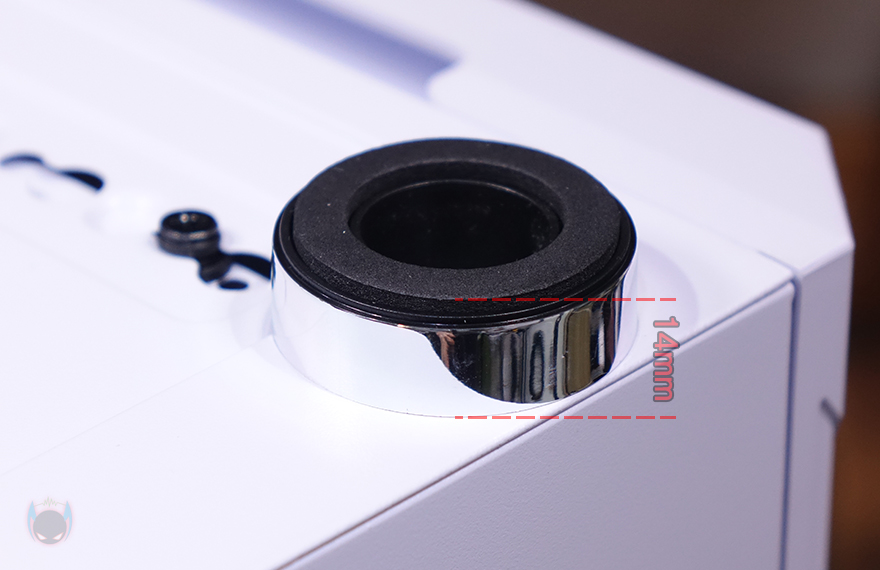 FARA H1M 케이스에는 맨 앞부분에 버튼 및 포트들이 배치되어 있는데, 맨 왼쪽에는 전원버튼(Power button)과 리셋(Reset) 버튼 그리고 작동상태를 알 수 있는 LED 램프가 배치되었으며, 오른쪽으로는 USB 3.0 포트 1개, USB 2.0 포트 2개, 마이크(MIC), 헤드폰(EAR) 포트가 배치되어 있습니다. 그리고, 뒤로는 상단 쿨링 효과 및 쿨링 시스템을 갖출 수 있게 자석방식의 먼지 필터와 함께 에어홀 처리를 해놨는데, 전면과 마찬가지로 팬을 120/140mm 최대 2개까지 장착할 수 있죠.