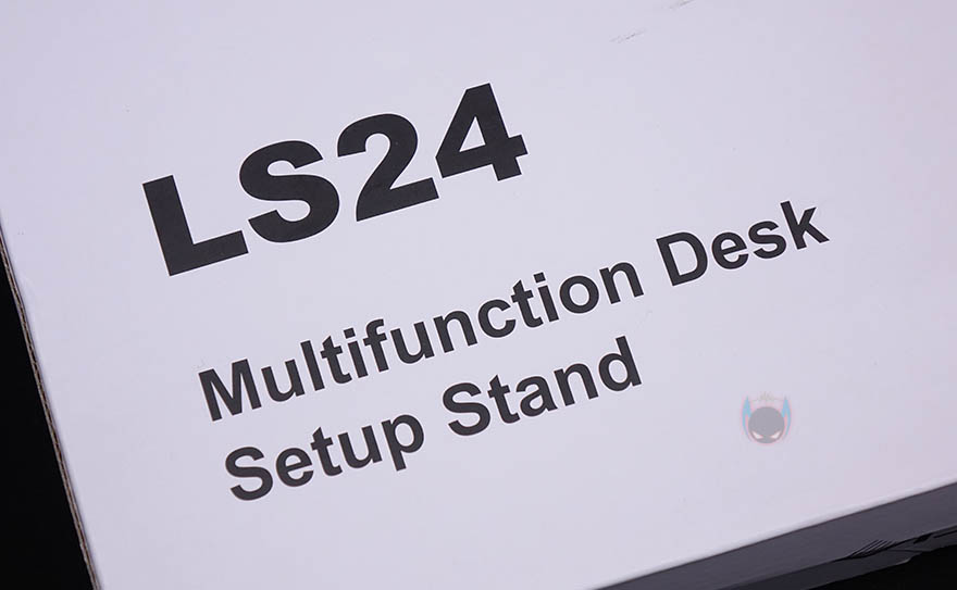 제품박스부터 살펴보면, 전면에 제품 이미지를 담고 있어서 한눈에 어떤 제품인지를 알 수 있죠. 특히, 시작에서도 언급했듯이 붐 암하면 일반적으로 마이크 스탠드로 생각하지만, 요즘 붐 암 제품은 다용도로 사용하는데, 그 중 대표적인게 바로 카메라 장착입니다. 그래서, LS24 역시 제품박스에 이미지도 카메라 장착으로 표현되어 있죠. 그래서, 아래에 모델명과 함께 붐 암이라는 문구대신 다용도 책상 스탠드(Multifunction Desk Setup Stand)라고 표기가 되어있습니다.