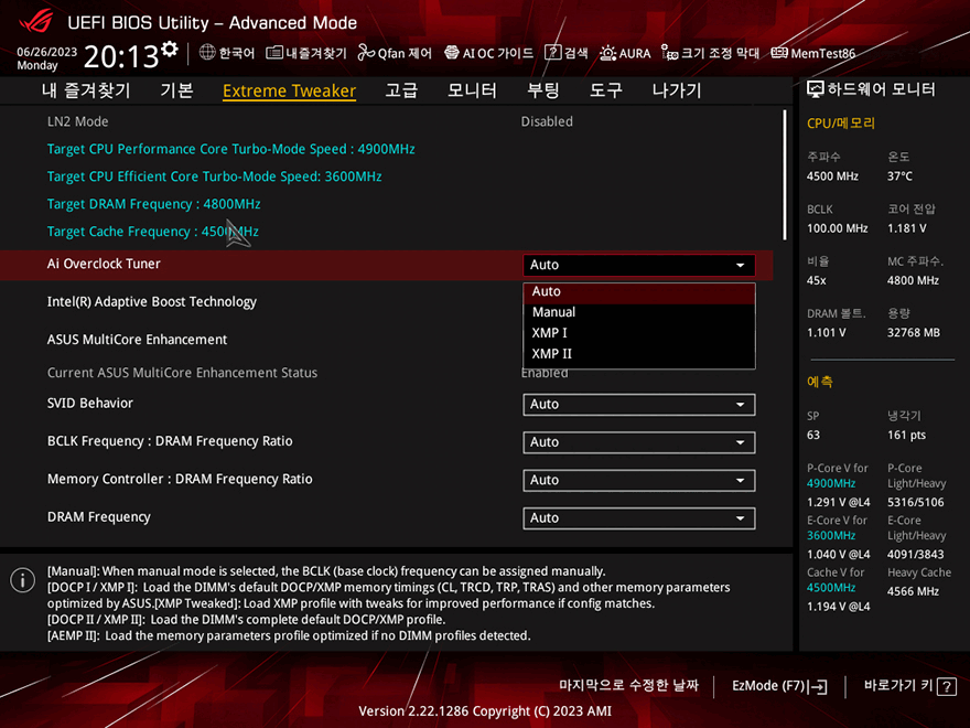 그럼, 이제 TRINITY RGB DDR5 7200MHz 메모리의 성능을 확인해 보는데, 그전에 이 메모리는 시작에서 언급했듯이 하이닉스 A다이(Hynix A-Die) 칩이 적용되어 있습니다. 최근 이런 하이닉스 A다이 칩으로 고급 클럭인 제품들은 프로파일(Profile) 값을 인텔(Intel)과 AMD 둘 다 가지고 있는 경우가 있는데, 이 제품 역시 확인해 보면, 인텔 XMP 프로파일과 AMD EXPO 프로파일로 각각 2개씩 적용된 것을 확인할 수 있죠. 그래서, 일단 제품은 7200MHz 클럭 즉 인텔 XMP 프로파일로 잡고 있기 때문에, 인텔용 메인보드 CMOS에서 XMP 프로파일값을 불러오면, 쉽게 7200MHz 클럭으로 오버클럭 적용되는 것을 확인할 수 있습니다. 참고로 램 타이밍은 34-46-46-86이고, XMP 프로파일 적용 전 기본 작동 클럭은 4800MHz 입니다.