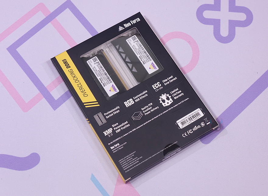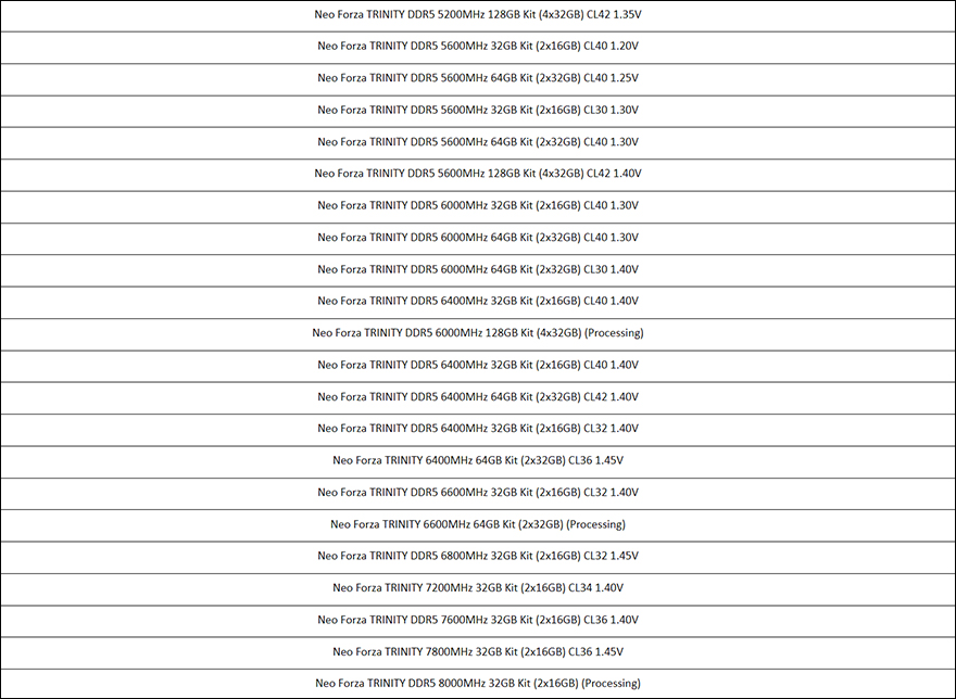 시작에서도 언급했듯이 TRINITY RGB DDR5 7200MHz 모델은 기존 제품에서 더 높은 클럭으로 추가된 모델이라 제품 패키지는 기존 제품들과 동일합니다. 따라서, 하이닉스 A다이(Hynix A-Die) 칩이 적용된 모델이라고 따로 구분을 하고 있지 않죠. 하지만, Neo Forza(네오프로자) 대표 판매 쇼핑몰인 뉴에그(Newegg)에선 하이닉스 A다이 칩 적용 모델을 TRINITY-X로 따로 구분하고 있습니다. 참고로 현재 대부분의 메모리 업체들은 방열판이 부착된 제품에 하이닉스 A다이 칩 적용을 6000~6400MHz 클럭부터 적용하는 경우가 많습니다.