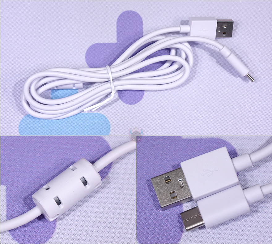 끝으로, A108 키보드의 하우징 케이스를 살펴보는데, 전면에는 왼쪽에 분리형 USB 전원 및 충전케이블과 연결되는 USB Type-C 포트가 배치되어 있으며, 스페이스-바 아랫쪽에는 Capslock, Numlock, 배터리 충전상태를 표시해 주는 LED 인디케이터가 배치되어 있습니다. 그리고, 키보드 측면에서 보면 타이핑에 최적화라 불리는 스텝-스컬처 2 단계배열을 갖추고 있죠. 또한, 키보드 밑바닥에는 A100과 동일하게 한쪽에 무선 On/Off 스위치가 배치되어 있으며, 모서리 부근과 높낮이 받침대에는 미끄럼방지 패드가 부착되어 있으며, 높낮이 받침대도 2 단계로 동일합니다. 물론, 왼쪽 받침대에 무선 2.4GHz 사용 시 이용되는 동글이 수납도 동일한 위치죠. 그리고, 유선과 충전 시 사용되는 분리형 USB 케이블은 총 1.5m 길이에 신호손실을 줄이도록 노이즈 필터가 적용되었으며, 인터페이스는 USB Type-C to A로 적용되어 있습니다.