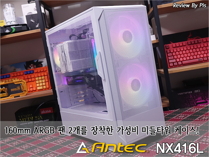 이제 RGB는 PC시장의 기본 트렌드가 되었죠. 그리고, 이를 가장 많이 반영하는 PC 구성품이 바로 PC케이스입니다. 이제는 웬만한 PC케이스에서 RGB, 정확히는 기본 제공되는 팬을 RGB 팬으로 장착해서 나오는 제품들이 흔해졌습니다. 그리고, PC케이스 색상도 이제는 기본 블랙뿐만 아니라 화이트 색상도 함께 나오는 경우가 많아졌죠. 그래서, PC케이스가 기본 세팅으로 잘 잡혀있으면 소비자들은 이에 맞춰서 블랙이나 화이트 콘셉트로 통일감 시켜서 조립 PC를 맞추는 경우가 요즘 트렌드라 할 수 있는데, 최근 안텍(Antec)은 이 2가지 조건을 갖추고 출시한 신제품 PC케이스가 있죠. 바로, NX416L입니다. 그럼, 안텍의 NX416L 미들타워 PC케이스는 어떤 모습을 갖추고 있는지 한 번 살펴보도록 하죠.