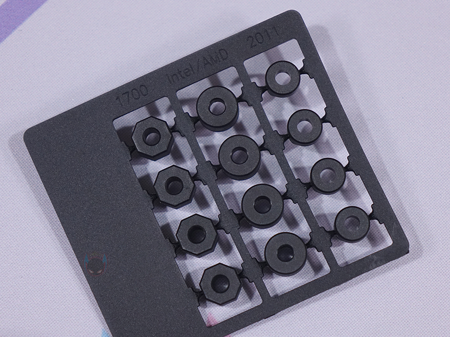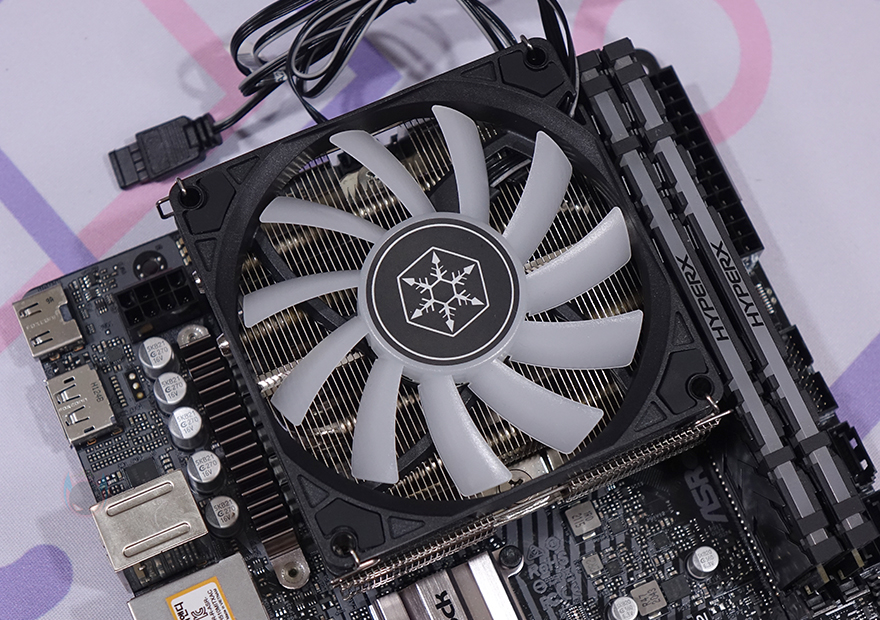 실버스톤 Hydrogon H90 ARGB 쿨러의 성능을 확인해보기 전에 장착부터 해야하는데, 장착 같은 경우 AMD는 메인보드에 기본 장착되어 있는 백플레이트를 그대로 사용하면 되고, 인텔 같은 경우에는 LGA 115x/1200 소켓과 LGA 1700 소켓용 백플레이트를 각각 제공해주고 있어서 사용자 CPU 소켓에 맞춰서 선택해 메인보드 후면에 끼워줍니다. 그리고, 와셔 역시 표기된 소켓용 와셔를 뜯어서 메인보드에 올려주고, 마운트를 올린 후 볼트로 백플레이트와 체결해주면 되죠. 그다음 Hydrogon H90 ARGB 히트싱크를 올려서 마운트와 체결하고 마무리로 다시 팬을 장착해주면 됩니다. 원래 로우-프로파일 쿨러가 장착이 쉬운 편이라 초보자도 쉽게 할 수 있는 난이도이며, 장착 후 메모리슬롯 간섭을 확인해보면 약 1mm정도의 여유공간으로 간섭이 발생하지 않는 것을 확인할 수 있습니다.