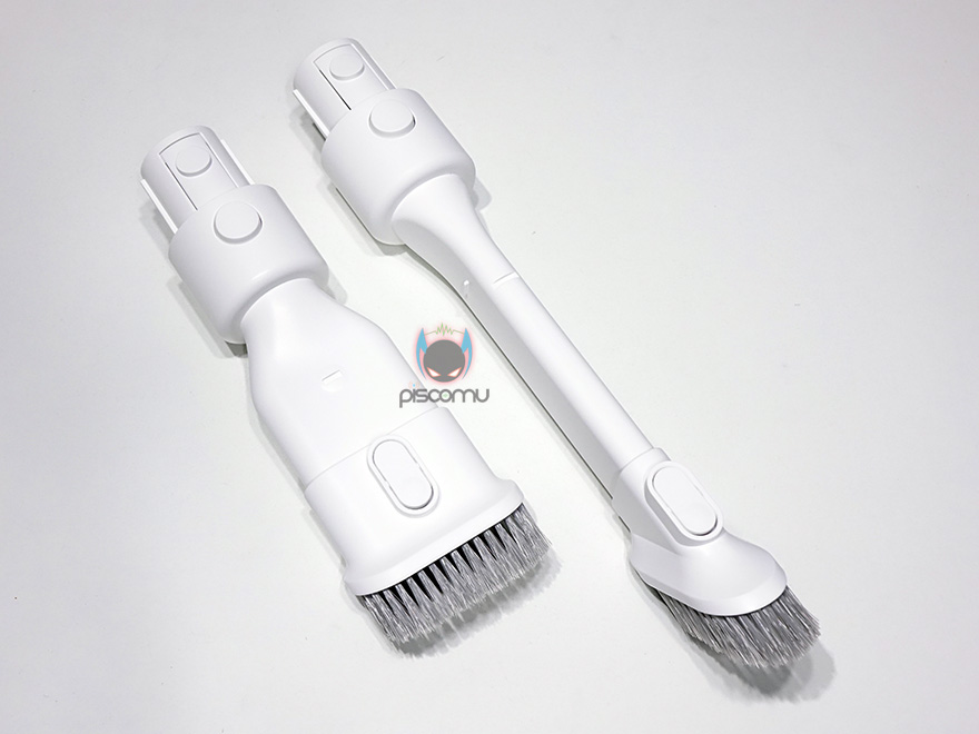 그럼, 이제 각 청소도구들을 하나씩 좀 더 자세히 살펴보도록하죠. 일단, 창문 틈 같은 곳을 청소할 때 사용되는 틈새 브러쉬와 이 보다 좀 더 넓은 와이드 브러쉬는 기존 V9와 동일한 디자인을 가졌고, 역시 길이 조절도 그대로 동일하게 적용하고 있습니다. 개인적으로 V9에서 유용하게 사용하던 브러쉬들이라 마음에 들어하는 부분이에요~