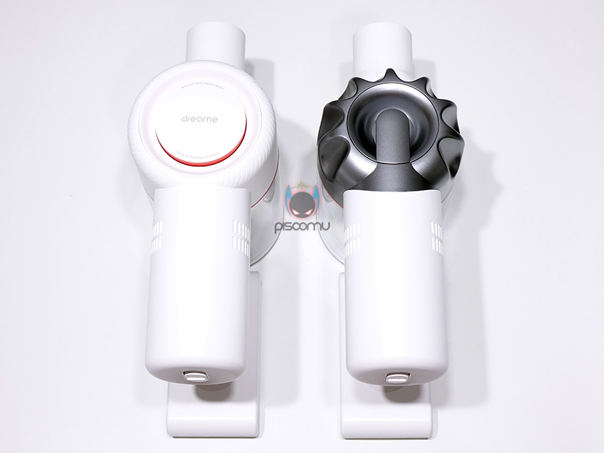 가장 큰 차이점이라면 바로 상단의 HEPA(헤파) 필터부분 디자인인데요. 기존의 V9 같은 경우에는 전형적인 원형 디자인을 가졌지만, V9P 같은 경우에는 마치 톱니 모양 같은 디자인을 형상하고 있습니다. 아마, V9P에 대한 제품만 알고 있었던 분들은 이 부분이 메탈릭 색상으로 처리되어 있어서 메탈재질이라고 알고 있었을 것 같은데요. 확인 결과 메탈재질이 아닙니다. 그냥 V9와 똑같은 플라스틱 소재에 메탈릭으로 도색만 입힌 겁니다. 저도 구입 전까지는 이부분이 메탈 소재로 바뀐 건 줄 알았는데, 아니였네요.^^
