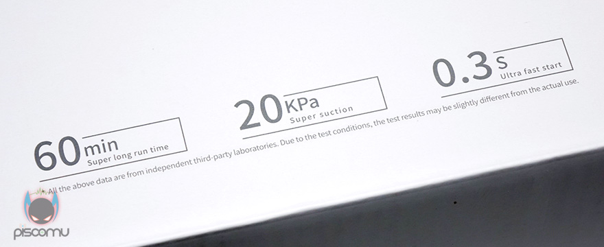 박스형태는 기존의 드리미 V9와 거의 유사합니다. 박스 앞뒤면에는 제품 이미지를 담고 있죠. 근데 눈에 띄는 점이 있지 않나요? 눈썰미 있는 분들이라면 이미 알겠지만, 그렇습니다. 중국어가 아닌 영어로 모든 문구가 표기되어 있습니다. 제품 특징 언급도 말이죠. 1단계에서 최대 60분 사용가능, 흡입력 표기, 전원작동속도까지 모두 영어로 표기~! 살짝 V9P가 글로벌버전이라는 느낌이 오지 않나요??