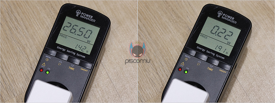 충전 소비전력은 약간 의외였습니다. V9와 V9P가 분명 동일한 스펙 사양을 가지고 있는데, 충전 소비전력은 V9P가 약 3W정도 더 소비되는 것을 확인할 수 있었는데요. 아마 220V 어댑터의 차이가 아닐까 생각합니다. 완충이 다 되면 0.2W 수준의 대기전력 모드로 유지하는건 동일하네요.