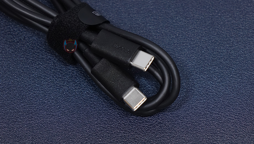 이렇게 대용량과 고속 충전을 지원하기 때문에 박스 후면에는 노트북 보조배터리 역할로도 충분하다라는 연출이미지까지 담고 있으며, 아래에 제품의 기본 사양도 확인할 수 있습니다. 그리고, 제품을 개봉하기 전 포장도 나름 신경을 써서 박스 위아래로 봉인 씰(Seal)도 적용되어 있죠. 개봉을 하면, 포장은 캐비넷 형식으로 되어 있으며, 보조배터리는 비닐 포장까지 되어 있습니다. 구성은 보조배터리, USB 충전케이블, 제품설명서, 보증서, 스티커 제공으로 이루어져 있고, 충전케이블은 USB Type C-to-C 타입입니다. 또한, 보조배터리 포트부분은 포장시 먼지 유입을 위해 보호비닐을 부착해놨기 때문에 사용시에는 제거를 해야합니다.