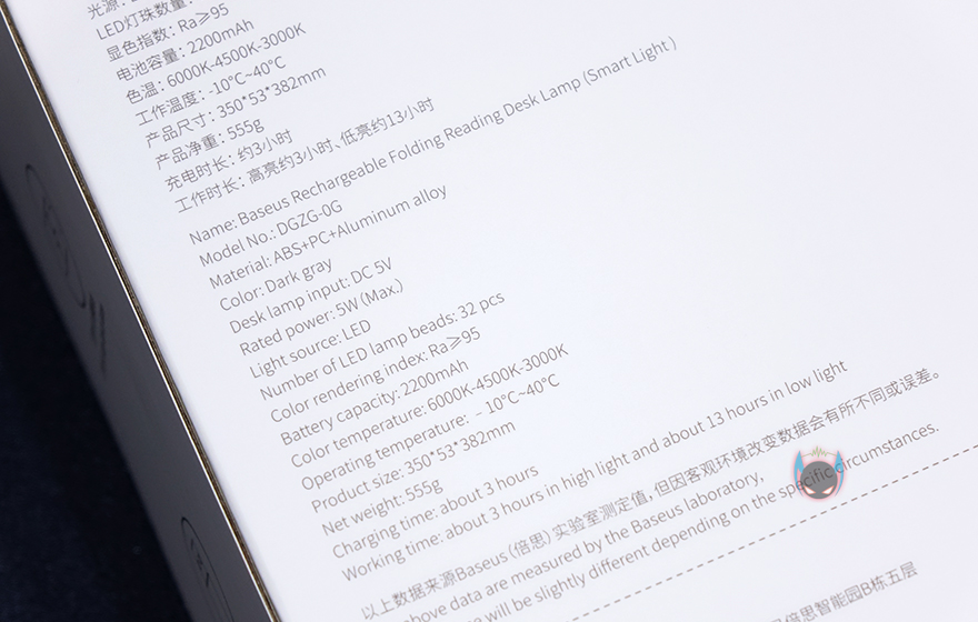 이제품은 LED 스탠드 제품이기 때문에 팩키지형태도 긴 편입니다. 박스 전면에 제품 이미지를 담고 있어서, LED 접이식 스탠드 제품이라는 것도 미리 할 수 있죠. 모델명과 함께 스마트 라이트(Smart Light)라는 문구도 함께 표기된 것을 확인할 수 있는데, 바로, 옆에 자동 밝기조절 표시도 함께 해놨기 때문에 왜 스마트 라이트 문구가 붙은지 쉽게 파악할 수 있습니다. 박스 한쪽 측면에는 제품의 주요 특징으로 3가지 색 온도, 밝기조절, 밝기 기억, 작은 사이즈의 베이스, 2200mAh 배터리, 유무선 지원, 블루라이트 차단과 눈의 위험성이 적은 라이트를 언급하고 있으며, 반대쪽 측면에는 자동 밝기조절 기능과 스탠드에 사용된 LED, 그리고 풀-스펙트럼 광원에 대해서 표기를 해놨습니다.