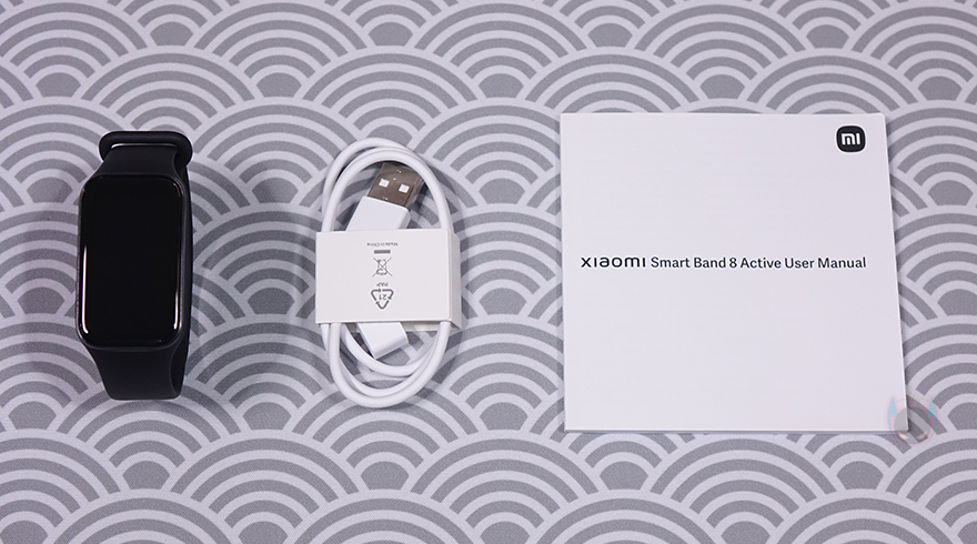 박스 후면에는 한국어를 포함해 각 나라별 언어로 간략하게 제품 사양을 표기해 놨으며, 박스 개봉 부분에는 씰(seal)이 부착되어 있으며, 제품 포장은 기본 비닐 포장이고, 제품구성은 미밴드8 액티브, 충전케이블, 제품설명서로 미밴드8처럼 간단한 구성으로 이루어져 있습니다.